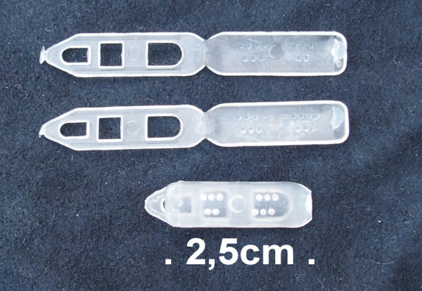 Auf einer klaren Kunststoffspange von 2,5 cm breite.
